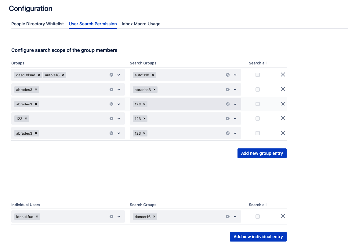 We offer the Confluence administrators the ability to configure for groups and individuals (we will use the same configuration with User Search Permission)