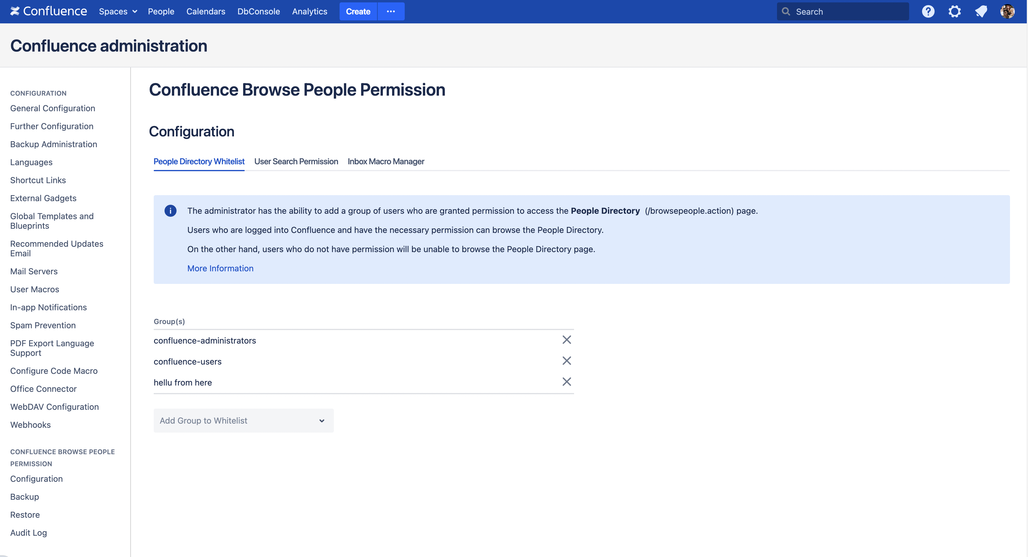 Under section Browser People Permission for Confluence select Configuration