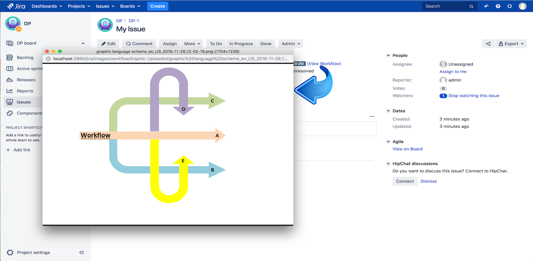 Once everything is configured, go to any issue in the project that has an assigned graphic.