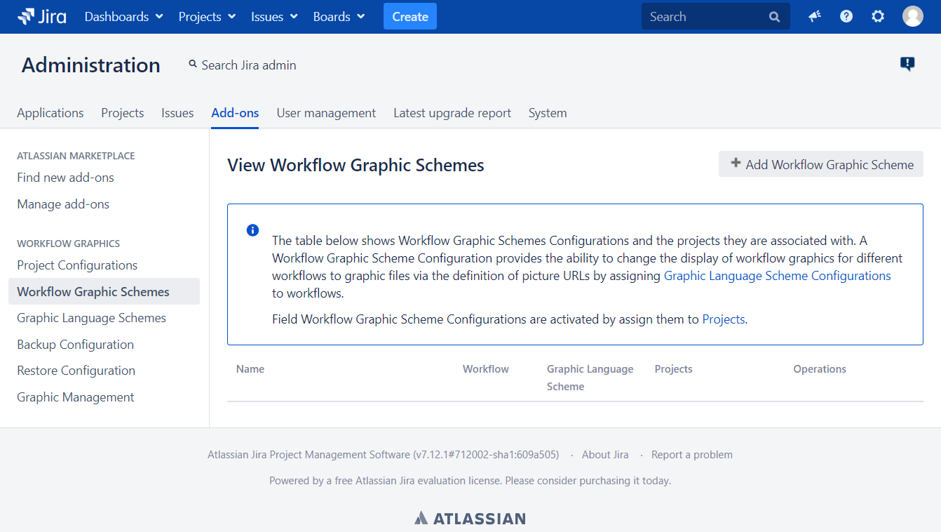 In the popup window, choose the Jira workflow that you want to be replaced by your Graphic Language Scheme then click Add.