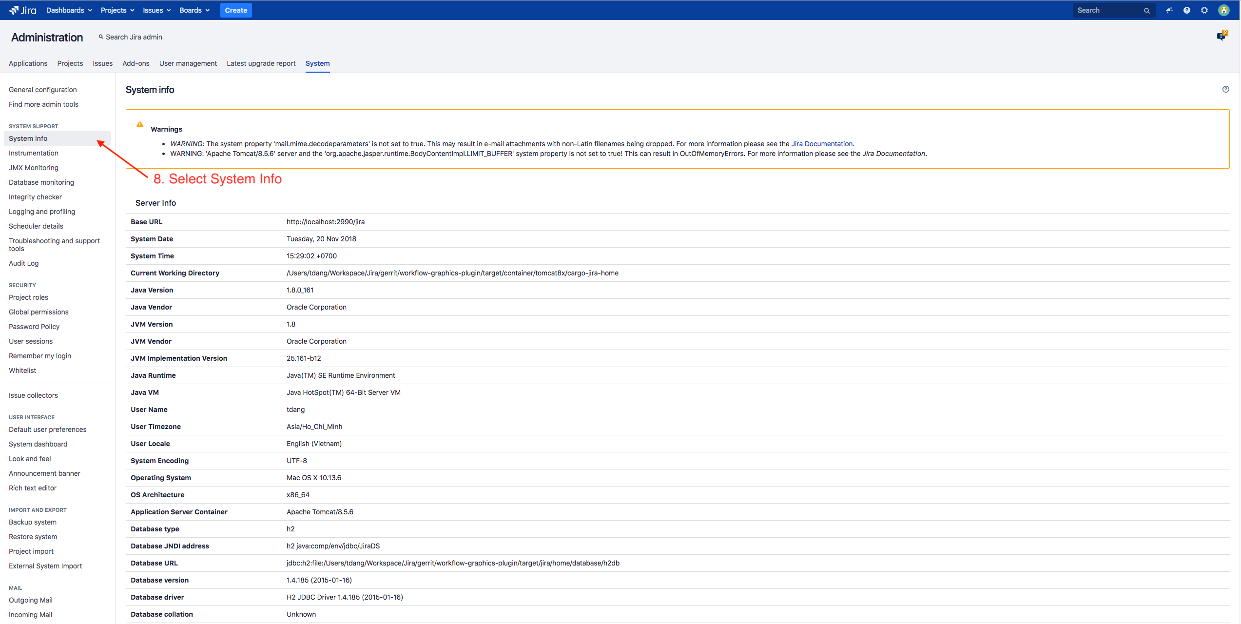 Step 8: To get the complete path: Open the JIRA Administration go to System/System info.