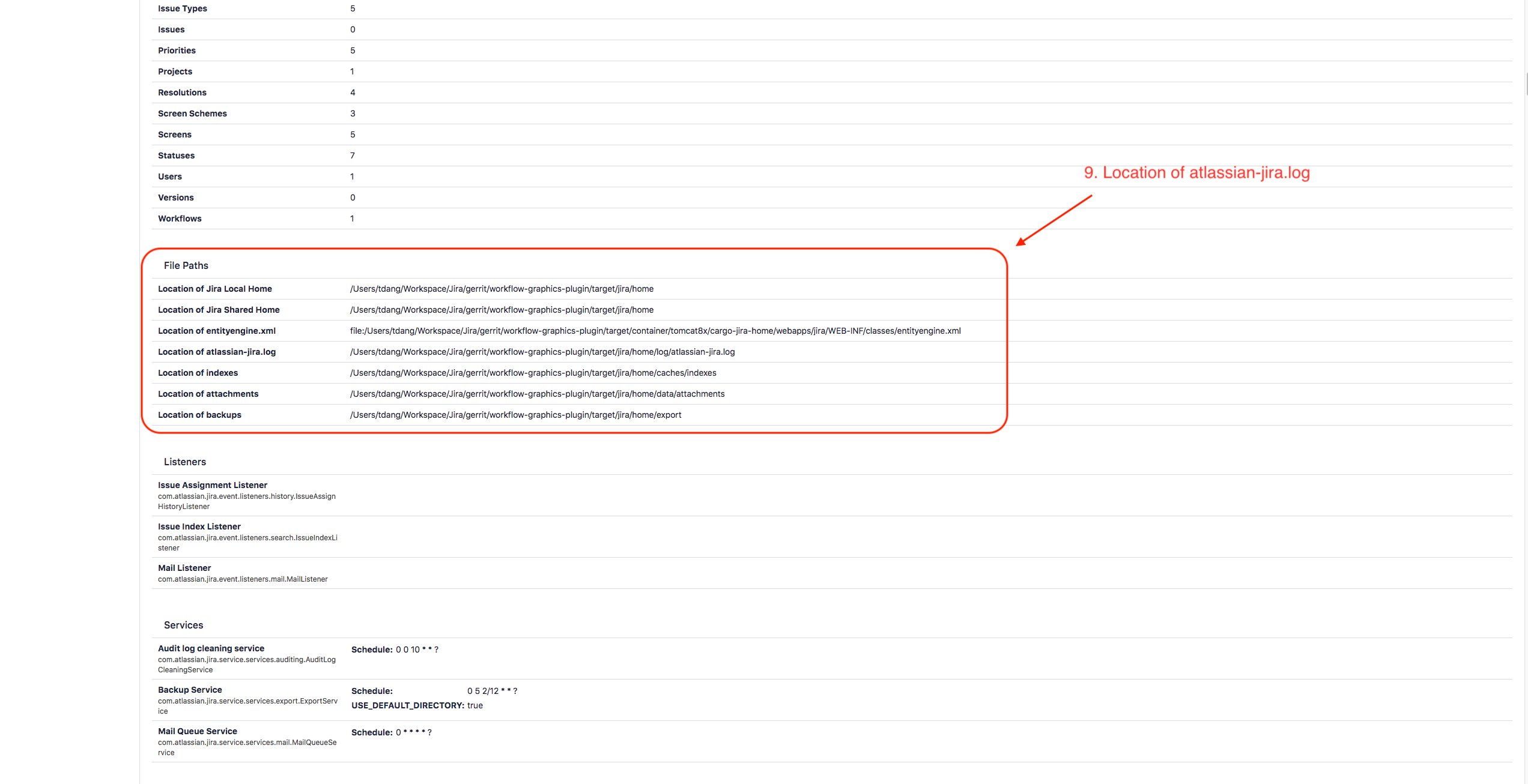Step 9: Scroll down to the section "File Paths". Here you find the Location of atlassian-jira.log.