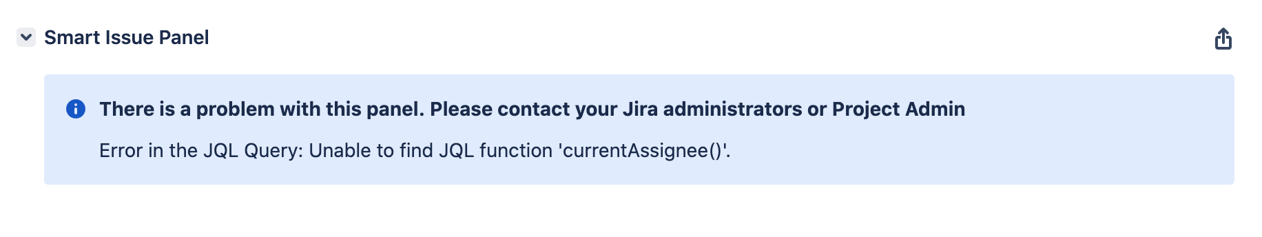 If you got a similar information panel, it means the configuration of that smart issue panel has a problem. Please make a screenshot or export the message then contact your project admin or Jira administrator.