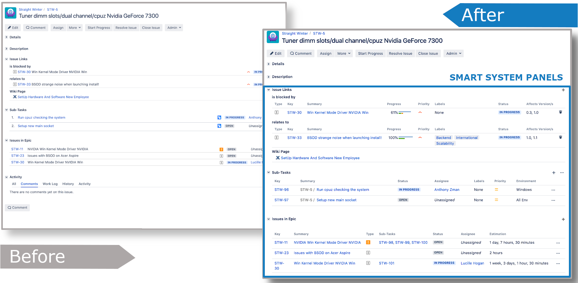 With Smart Panel for Jira app, the user has near endless possibilities to adapt the issue panels in your projects to your specific needs.
